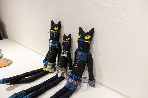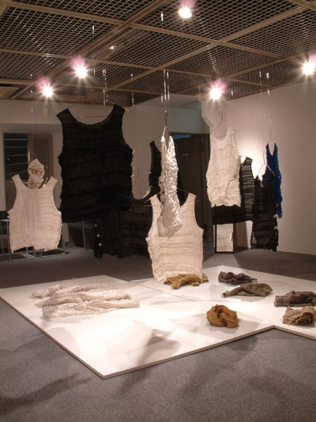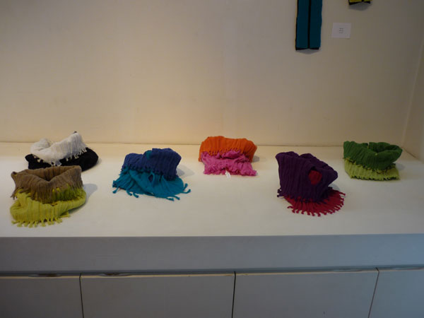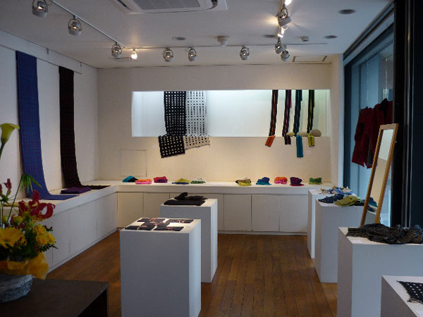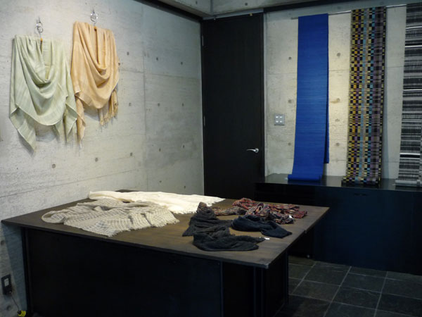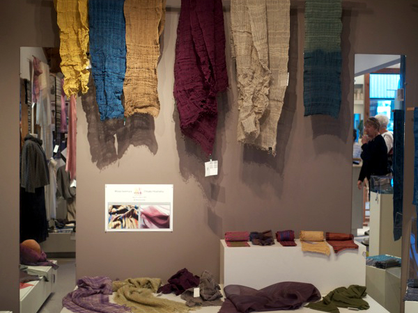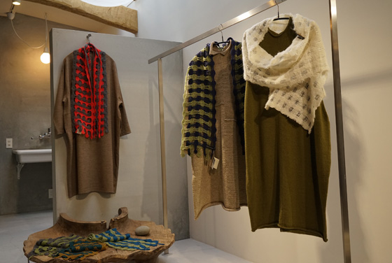 オリジナル素材の超極細カシミヤ糸のショールや、シルクステンレス糸の不思議なスヌード。自作ファブリックの小裂を使ったキュートな人形、ブローチなど。色と風合いを、お楽しみください。